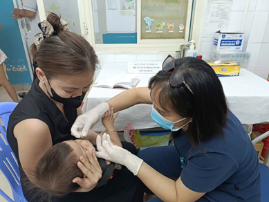 Nhân viên y tế cho trẻ uống bổ sung vitammin A